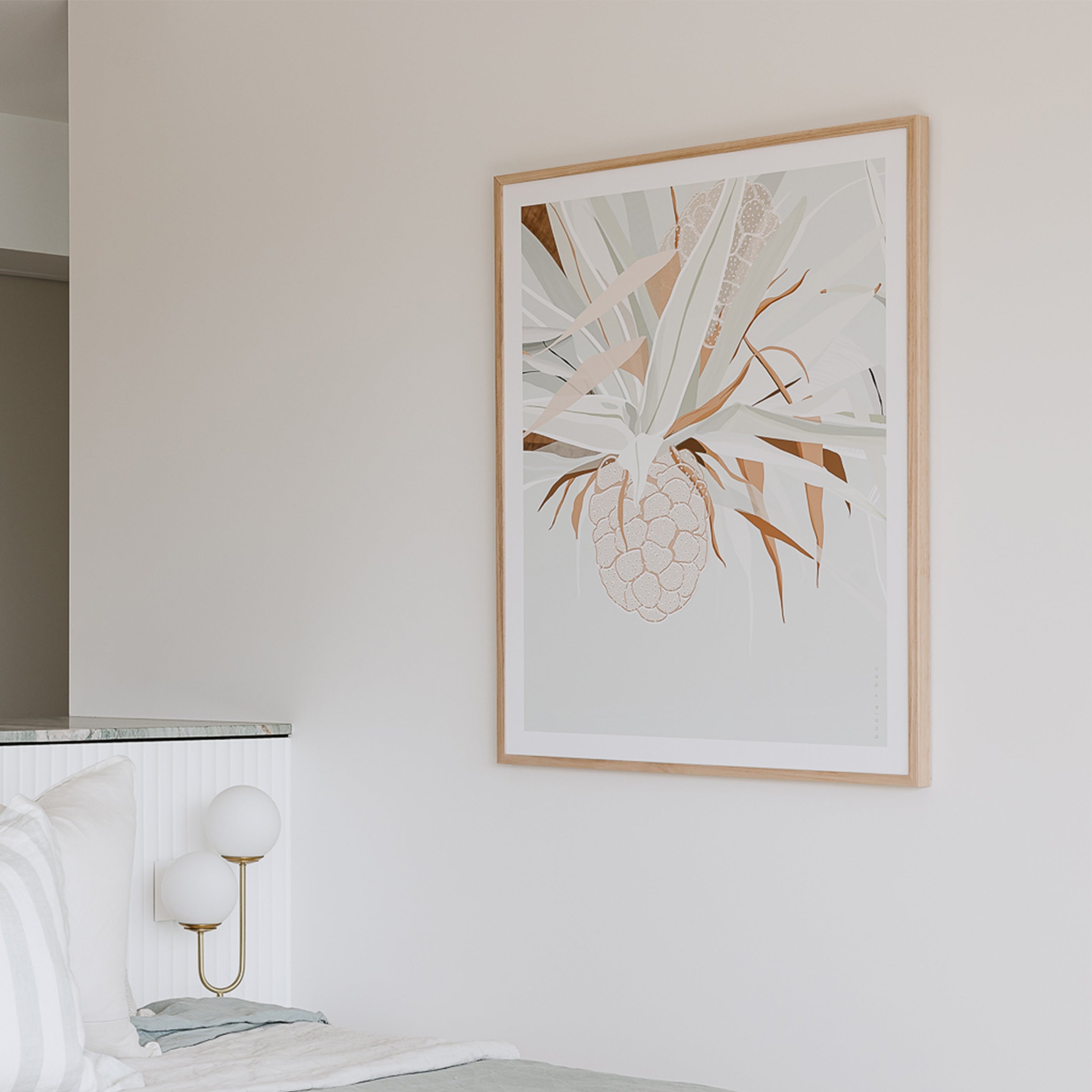 A beautiful Fine Art Print is proffessionally framed in a premium Australian blonde oak hardwood timber frame, which features an additional 5cm white border around the art. The artwork is then finished with crystal clear glass or high grade Perspex to protect the fine art print to ensure it lasts a lifetime. Please note, if ordering one of the larger artwork sizes (80cm, 100cm, 120cm, 140x70cm and above) professional picture framing Perspex will be used in place of the glass, due to the weight and span of the artwork. International orders will exclusively be produced with Perspex.
