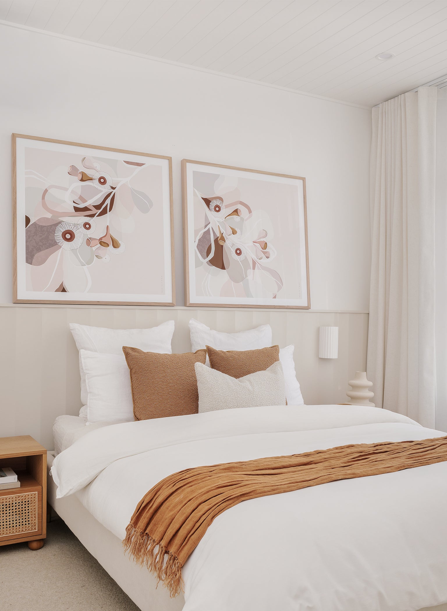 My signature framed artworks use a premium blonde oak, hard wood timber frame, that is custom made by my team of local professional framers. It has a sleek narrow profile with a generous depth of 38mm off the wall.