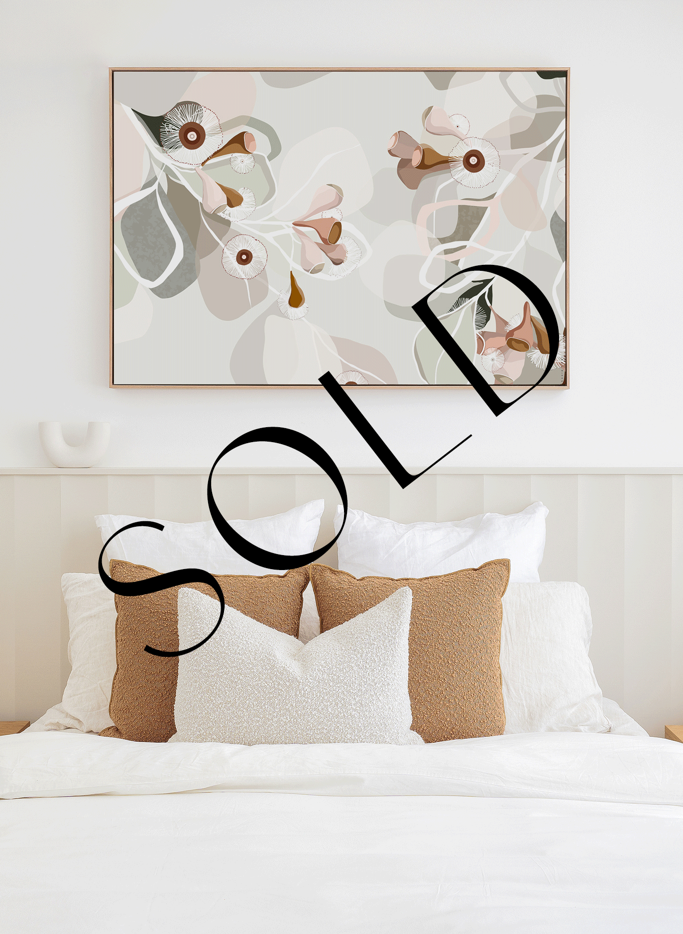 My signature framed artworks use a premium blonde oak, hard wood timber frame, that is custom made by my team of local professional framers.  It has a sleek narrow profile with a generous depth of 38mm off the wall.